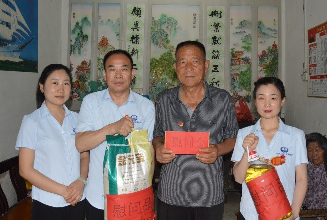 七一前夕,潁上縣城市地表水廠項目黨支部走訪慰問項目駐地楊圩村困難老黨員蔣佩云同志,送上關懷及慰問品。