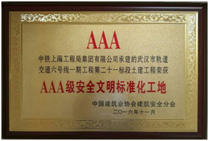 11月30日, 2016年度全國(guó)“AAA級(jí)安全文明標(biāo)準(zhǔn)化工地”表彰大會(huì)在安徽合肥召開,公司承建的武漢軌道交通六號(hào)線一期第二十一標(biāo)段土建工程喜獲本年度“AAA級(jí)安全文明標(biāo)準(zhǔn)化工地”。武漢市軌道交通六號(hào)線一期第二十一標(biāo)段土...