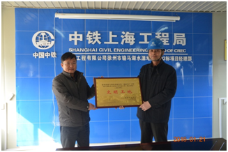1月21日,徐州市水利局規計處處長于孝民為公司徐州駱馬湖水源地施工03標項目部頒發“文明工地”證書,并舉行授牌儀式。 徐州駱馬湖水源地施工03標開工之初,項目部明確創優目標...