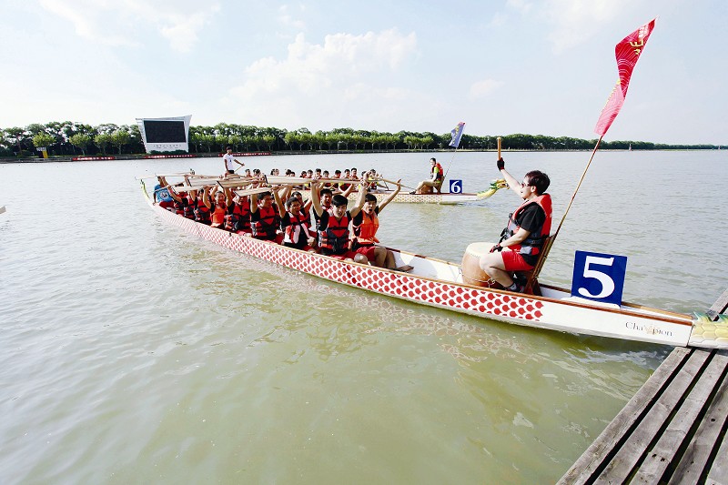 本次龍舟賽為500米直道競速,比賽均設6條航道,30支龍舟隊通過預賽競速,10支隊伍分為兩組進入決賽的最后角逐。來自建設交通系統34家單位組成的30支龍舟代表隊在此一較高下。1345分,隨著發令信號槍響,一條條龍舟沿著500米的賽道向前沖去,似蛟龍出水,如百舸爭流,劈波斬浪、奮勇爭先。經過激烈的角逐,代表中鐵上海工程局集團參賽的“中鐵上海先鋒號”龍舟隊以小組第一的成績順利進入決賽。在接下來的決賽中,集團公司龍舟代表隊奮力拼搏,最終以2秒之差遺憾獲得亞軍,但233秒已經創造了隊伍參加龍舟賽以來的歷史最好成績。