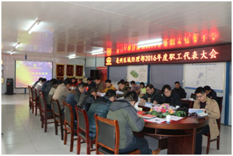 會議最后,公司工會副主席王垚進行總結發言,他代表公司工會對亳州區域經理部職工代表大會的順利召開表示熱烈祝賀,同時肯定了經理部的會議籌備工作,并對今后的項目工會工作提出幾點要求:一是進一步規范工會管理工作,全面落實維護職能,切實解決與職工利益聯系最緊密的問題,讓工會工作在基層充分發揮作用。二是抓好群眾安全生產監督員工作,在數量上嚴格按照文件要求配備群安員,在質量上通過日常培訓、檢查、考核等途徑切實提升群安員的履職盡責能力,對考核不合格的群安員予以停發津貼甚至解聘的處理,力爭打造一支素質過硬、責任心強的群安員隊伍。三是建設好“職工小家”,按照集團公司“職工小家”有形化建設指導意見的要求,結合項目實際,為職工營造良好舒適的工作生活環境。四是重視評先樹模工作,多多挖掘身邊的典型,學習身邊的先進,引導員工們自覺以先進典型為榜樣,立足本崗、務實創新、拼搏奉獻。