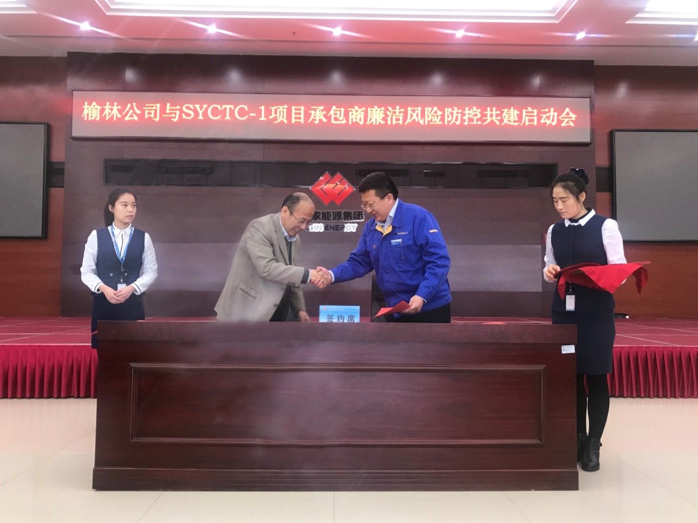 11月30日,神華榆林能源化工有限公司與SYCTC-1(循環(huán)經(jīng)濟煤炭綜合利用一階段)項目承包商廉潔風險防控共建活動啟動會在榆林市榆神工業(yè)區(qū)召開。公司副總經(jīng)理李明華作為14家參建單位代表之一,就共建內(nèi)容進行簽約并作表態(tài)發(fā)言。