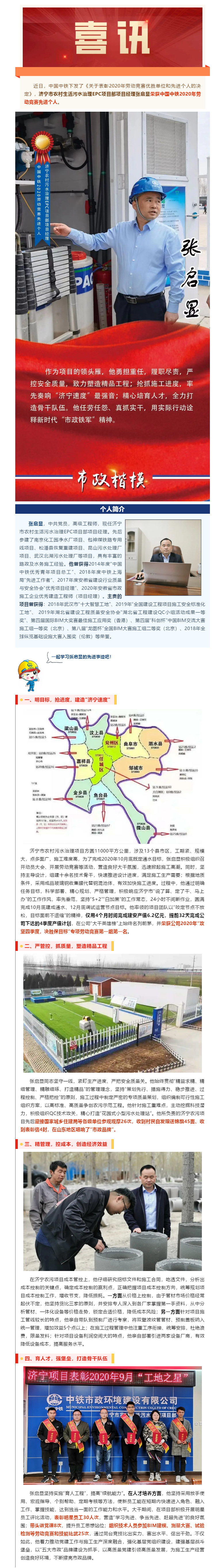 濟寧項目部項目經理張啟顯榮獲中國中鐵2020年勞動競賽先進個人