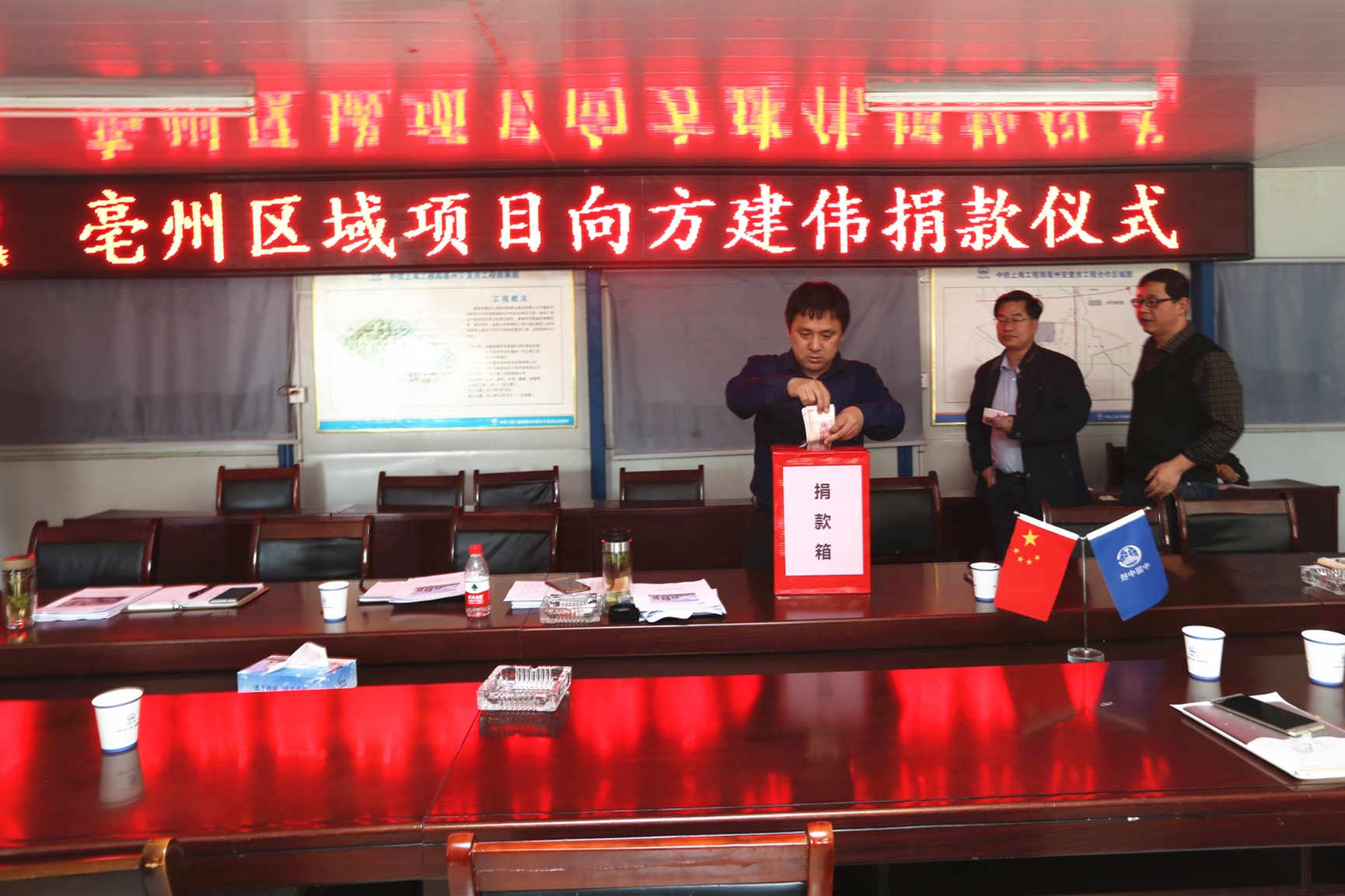 4月22日,中鐵上海局市政公司亳州區域項目部組織全體員工為重病同事方建偉進行愛心募捐,譜寫了一曲愛的樂章。