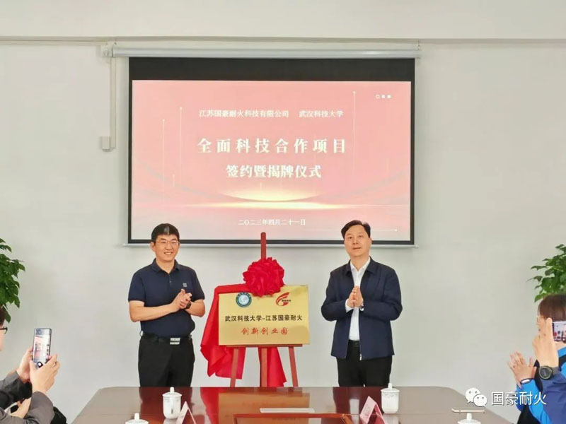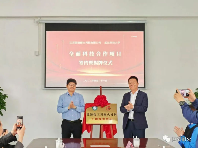 國豪耐火致力于耐材行業研制和開發,是國內危(固)廢焚燒處置行業耐材的領跑者,被評為國家高新技術企業、江蘇省專精特新中小企業。公司注重人才引育,多年來與武漢科技大學建立了穩定的產學研合作關系,在人才培育、產品研發方面開展了長期交流合作。本次簽約儀式,標志著雙方將開展全面科技合作,不僅能完善丁蜀鎮現有產業鏈,更能立足自身優勢,做強特色產業,推動節能與環保事業的發展,打造新的綠色發展支撐點。